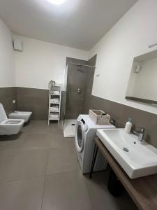 Дополнительные удобства: рабочий стол, гладильные принадлежности (утюг и гладильная доска), сушилка для одежды и стиральная машина для комфортного проживания во время длительных поездок. В ванной комнате есть душ и биде, предоставляются полотенца и туалетные принадлежности, также доступен фен для волос.